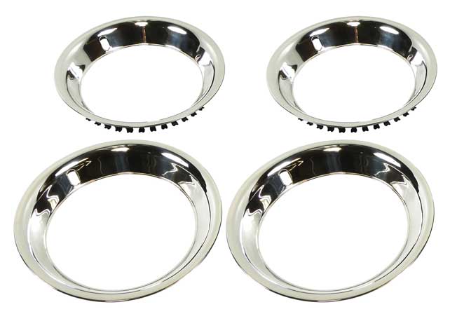 15" Stainless Steel 2-1/4" Deep Rally Wheel Trim Ring Set for Reproduction Wheels - Tri-Five Chevy