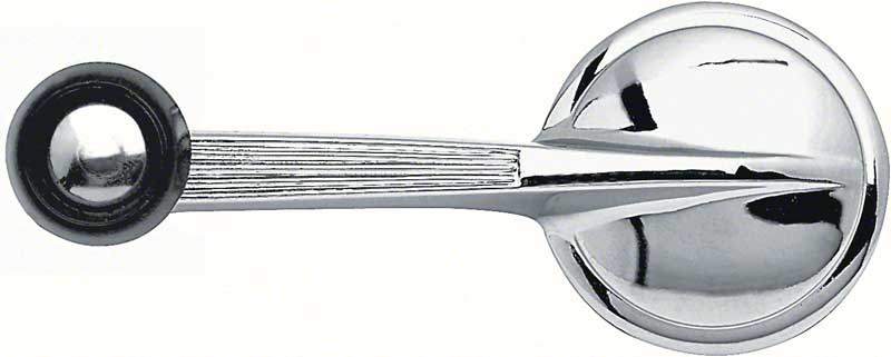 Josh's Muscle Car Parts reproduction front or rear window crank. Die-cast, chrome plated and features a black knob with chrome insert for an authentic appearance.