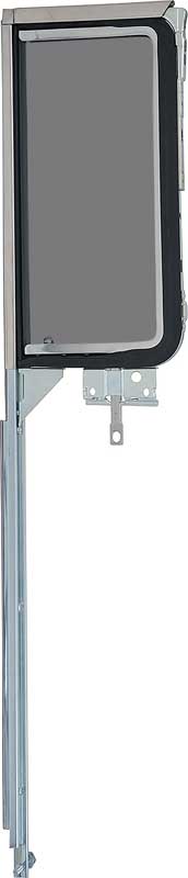 Reproduction complete vent window frames for the passenger's side on 1955-57 Chevrolet hardtop and Nomad models. Each assembly includes the inner frame, outer frame, rubber seals and vertical division bar assembled with grey glass and ready to install.
