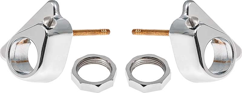 Reproduction chrome bezels for 1955-1959 Chevrolet and GMC trucks. These chrome bezels surround the wiper transmission towers that the wiper arms attach to. These tower bezels are made from high quality die cast zinc exactly as original and have the windshield wiper pick up tube attached for trucks with the windshield washer pump option. These towers have the correct stainless steel slotted plug screw. Remove the screw and use part # 3718638 (washer nozzles) if the truck has the pump option. Includes the chrome retaining nuts # 3683913. Sold as a set with 2 bezels and 2 nuts.