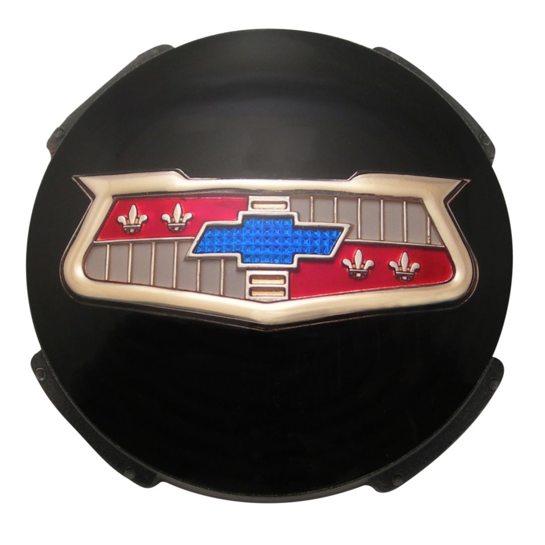 1957 Chevrolet Full Size Car Black Wheel Spinner Emblem, Each