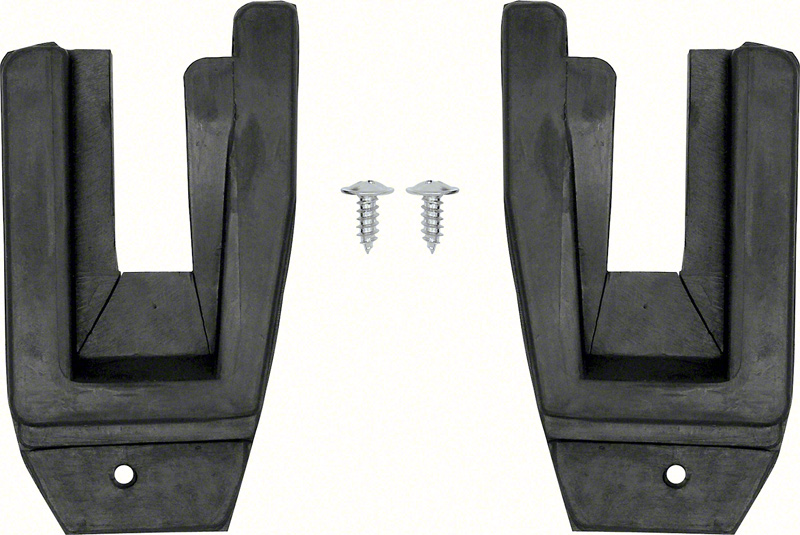Correct reproduction of the U-shape rubber molded weatherstrip. This seal attaches to the door jamb area under the quarter window vertical weatherstrip and seals the door jamb quarter section. Sold in pairs. Includes mounting screws.