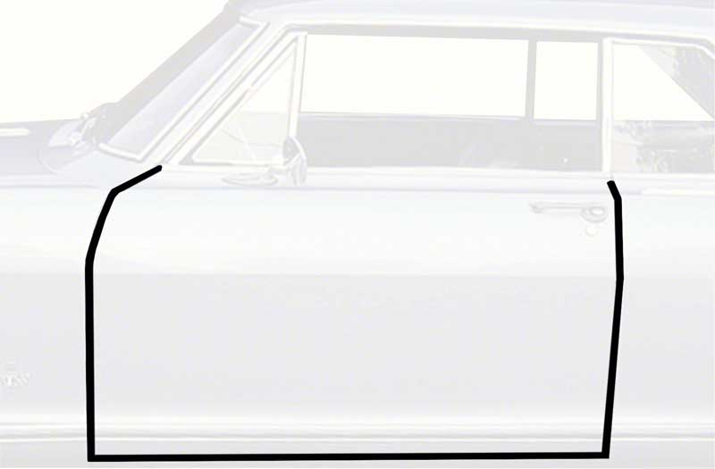 Reproduction of the original door frame weatherstrip installed on 1962-67 Chevy II/ Nova 2 door hardtop and convertible models. Each weatherstrip is manufactured to the correct configuration and features the "push-in" mounting pins used to attach the rubber to the door frame. Requires the purchase of K6817 weatherstip plugs for proper installation.