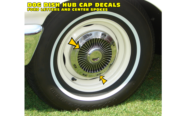 1963 Ford Galaxie Dog Dish Hub Cap Decal Kit - MATT BLACK ONLY - kit includes F O R D letters and triangle inserts for 4 hub caps