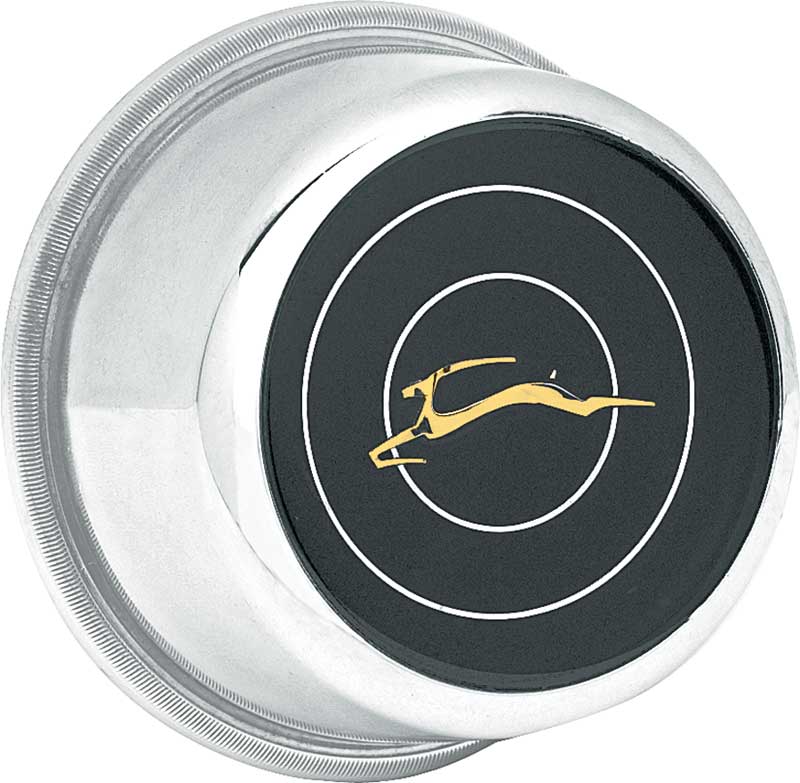 Josh's Muscle Car Parts die-cast reproduction Impala horn cap designed for 1966 Impala and SS models without wood grain steering wheels.