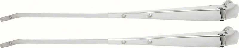High quality reproductions of the stainless steel wiper arms for use with "Aero" wiper blades on 1967-69 models. "Aero" wiper blades are designed to use wind resistance to hold the blade against the glass to reduce wiper lift at high speeds and to improve wiping performance.