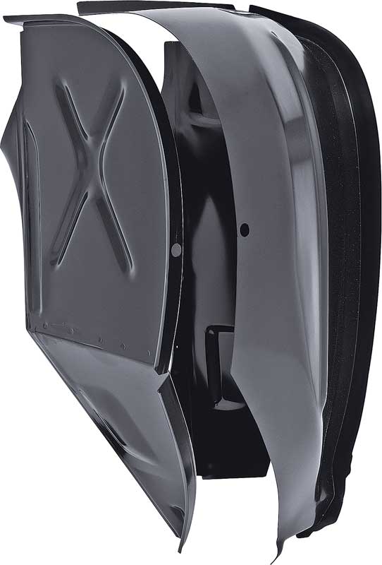 A stamped steel reproducton of the outer and inner side cowl panel. This is a common place for rust to occur on most models. This item is shipped as two unassembled pieces and welds between the cowl panel and floorboard behind the kick panels.