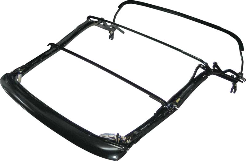 Replace your broken, bent, rusty or missing 1967-69 convertible power top frame with this quality reproduction of the original power top frame assembly. This steel frame includes fully reinforced hinge mechanisms, header bow, intermediate bows and rear bow to replace the entire frame.