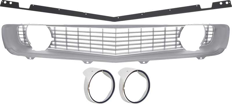 1969 Camaro Restorer's Choice Standard Silver Grill Kit with Headlamp Bezels & Chrome Ring
