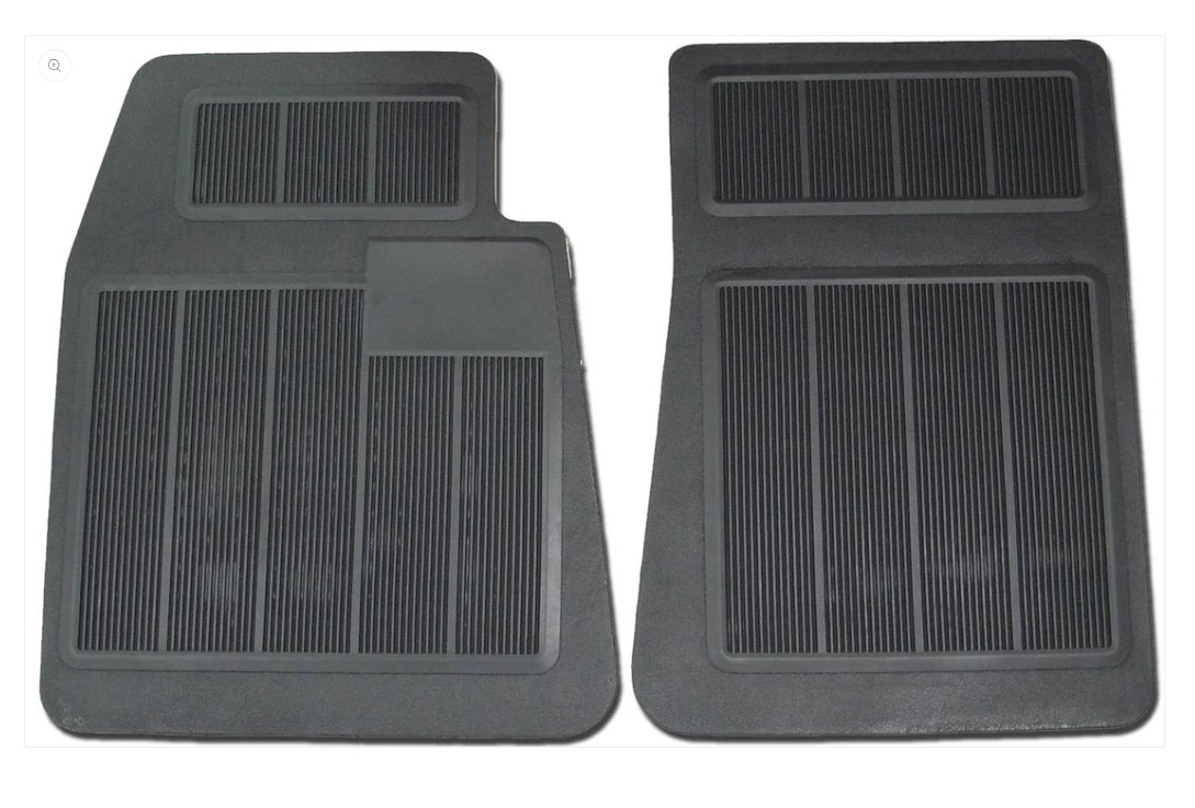 These Legendary Auto Interiors excellent quality reproduction, heavy-weight next-generation custom vintage rubber floor mats are custom made to order. These floor mats, sold as a set, feature an exact logo replication, ensuring an authentic look. Crafted with precision, they are designed to meet the highest standards of accuracy, fit, and quality, as licensed by the original vehicle manufacturer. These floor mats are not only functional but also eye-catching, making them a standout addition to any vehicle's interior. With their durability and meticulous detailing, they are sure to turn heads and enhance the overall aesthetic of your car.
