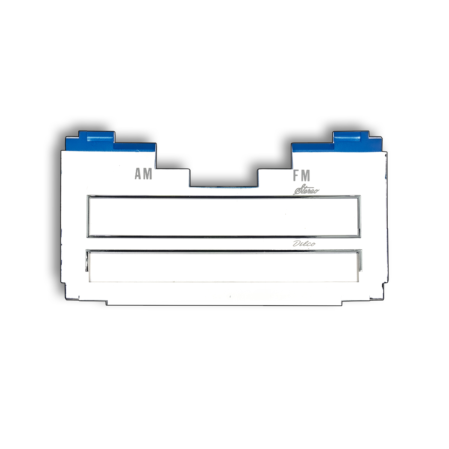 - Flawless finish: Blue top edge with white lettering for a classic look that enhances your vehicle's radio unit.