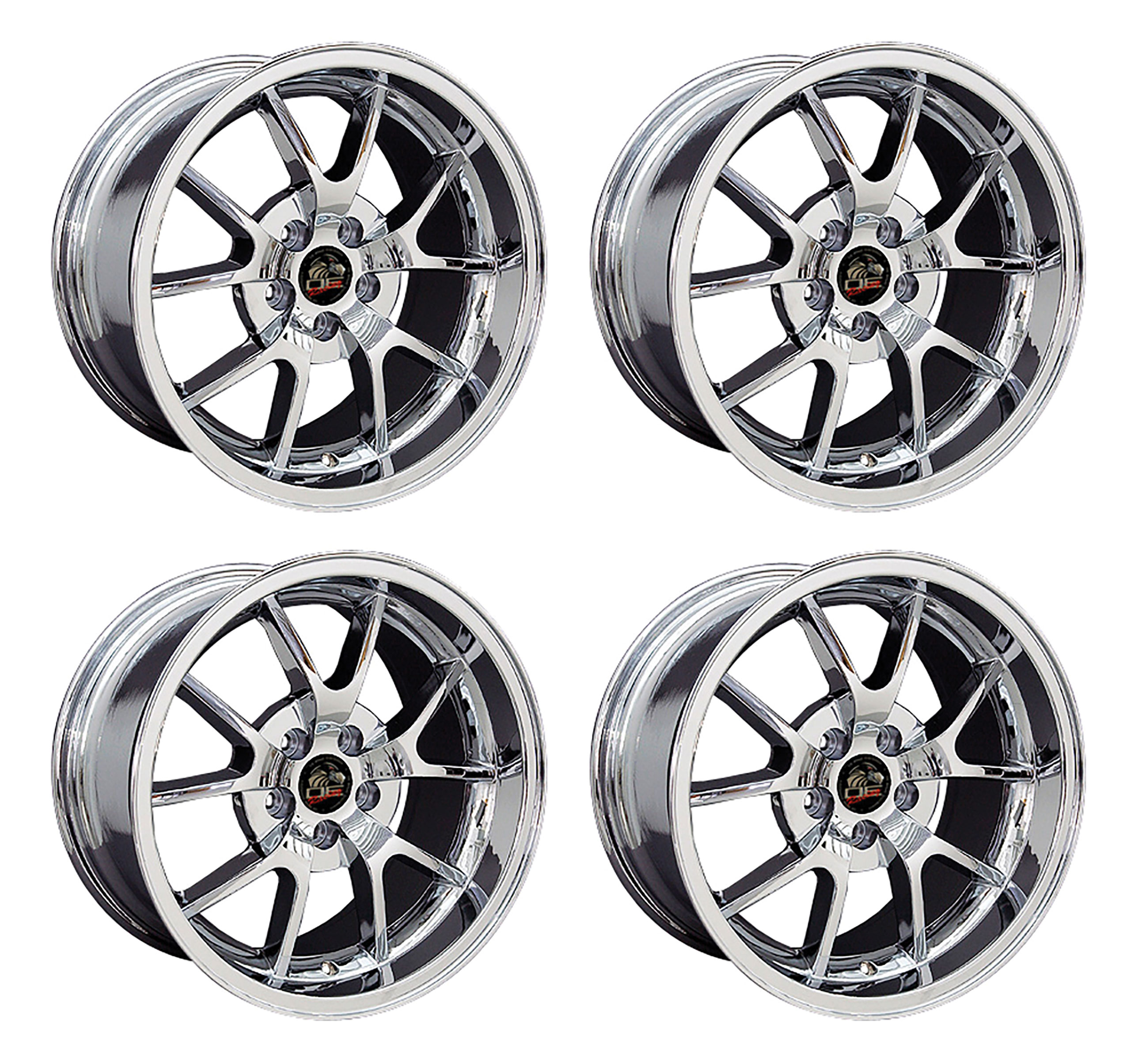 1979-2004 Ford Mustang Wheel Set, 18" FR500 Style Wheels, 5 Lug, Chrome Staggered