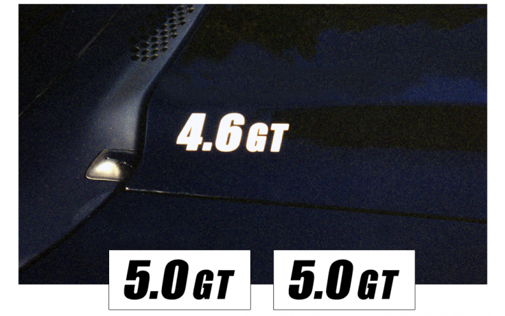 1994-98 Mustang Hood Cowl Decal Set - 5.0 GT DESIGNATION - NO STRIPES - NUMBERS ONLY - Does both sides of hood