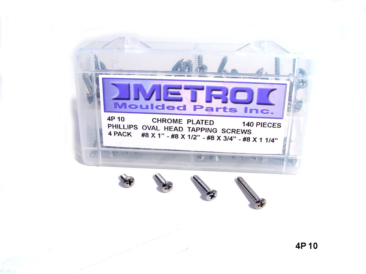 Phillips Oval Head Tapping Screws Chrome Plated 140 Piece Set; 4P 10