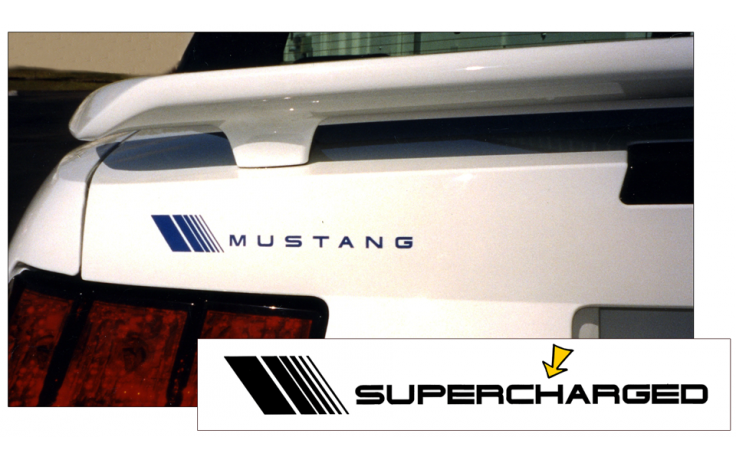 Mustang Fader Trunk Decal - Supercharged Name - Size 1.12" Tall